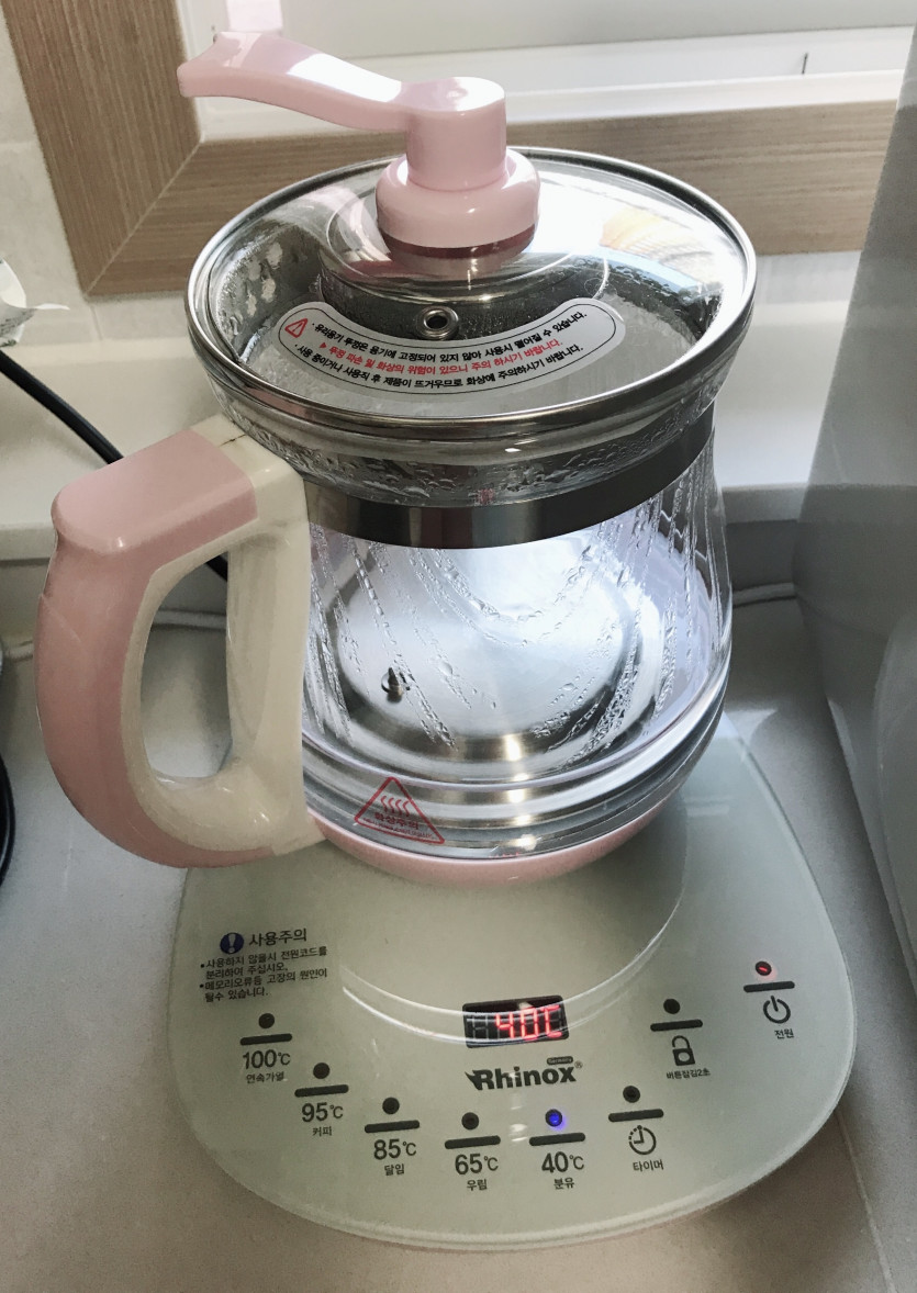 그냥 물만 끓여주는 전기포트가 아니다. 차, 커피, 달임, 우림, 분유에 맞는 온도로 설정할 수 있다. 유리라 내부가 보이고 입구가 넓어 세척도 쉽다.