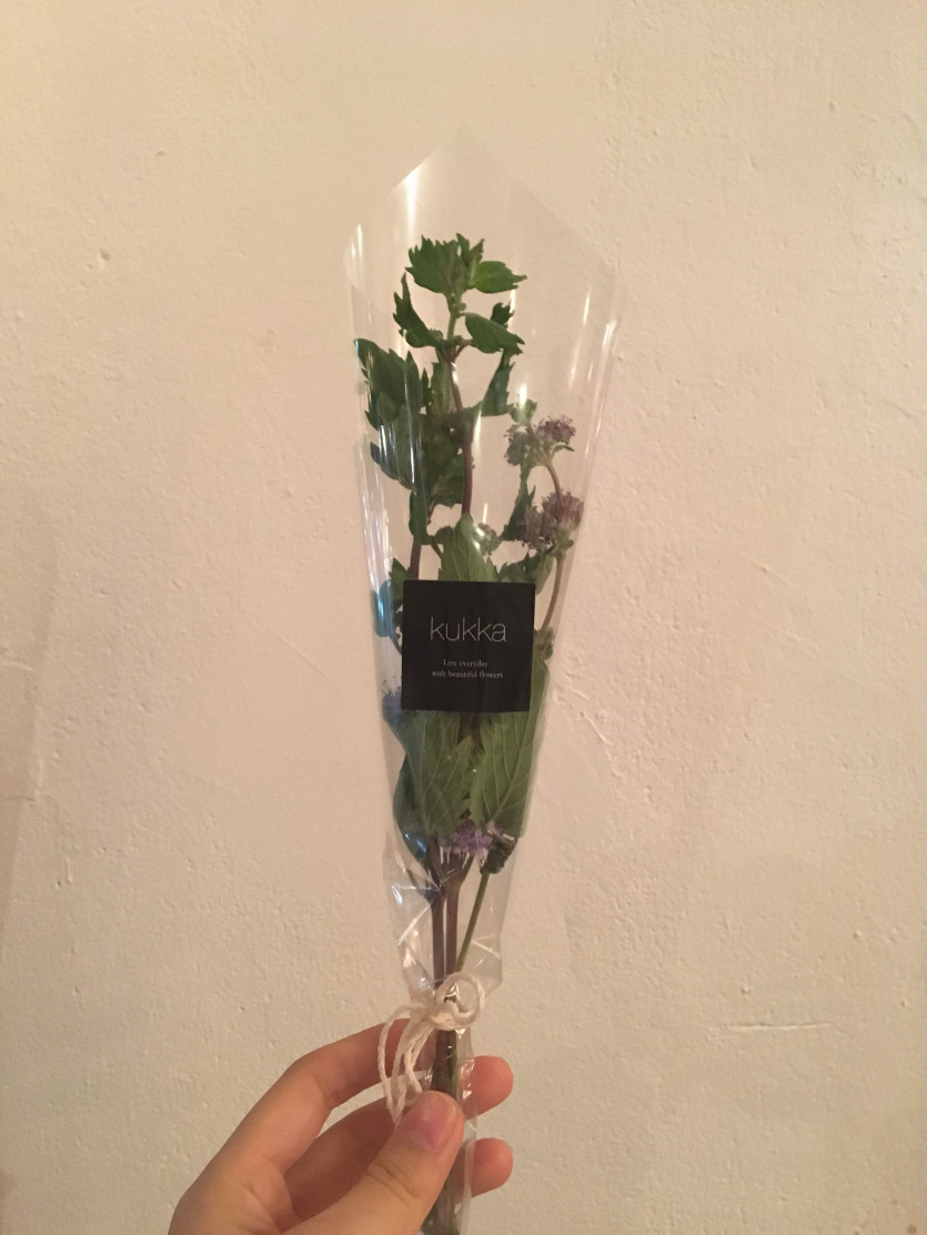 커피 한 잔에 꽃 한 송이를 건네받았다.