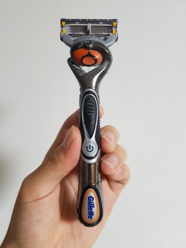 중간에 있는 주황색의 플렉스볼이 면도날을 얼굴의 굴곡을 따라 자유자재로 움직이게 해주어 섬세한 면도가 가능하다. 또한 진동기능이 있어 조금의 잔털 없이 완벽한 면도가 가능하다.