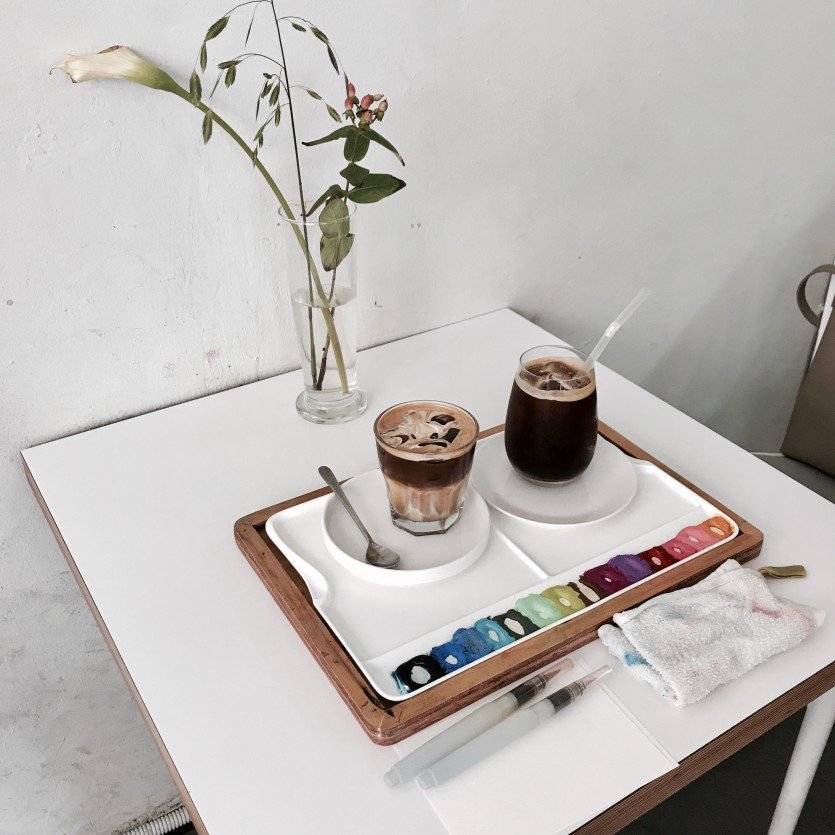 초등학교 이후 붓을 잡아본 일이 없는데 괜히 잘 그리고 싶어 커피는 뒷전이고 붓과 종이에 집중 :p