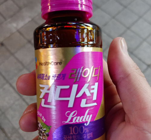효과가 좋다는 여명을 마시고 나면 인상이 써지더라고요. 한약 먹는 느낌이 들어서... 환제품들도 뭔가 약을 먹는 듯한 느낌. 컨디션 레이디는 사과 주스 맛이라서 부담 없고 효과 짱