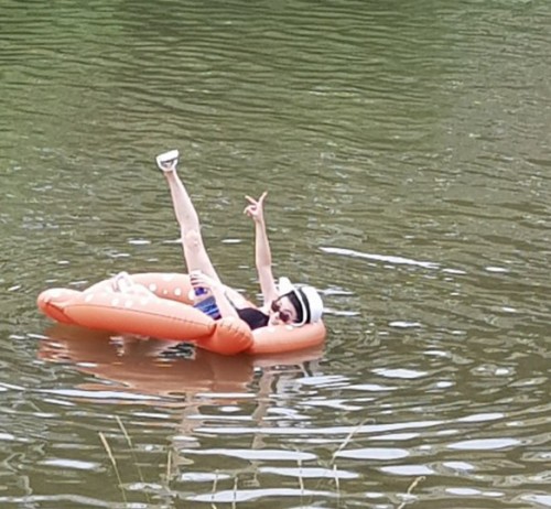 이제 튜브 한개땜에 삐지지마요. 구멍이 세개있어서 다함께 둥둥~ 그리고 플라밍고튜브는 너무 높아서 타고있음 물이 하나도 안닿아서 노잼인데. 이건 낮아서 물놀이하기 딱 조음